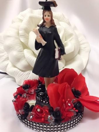 .Graduation Girl Cake Topper Centerpiece Favor Figurine High School College Decoration in Black and RedCREDIT AMAZON.COM AND GOOGLE.COM